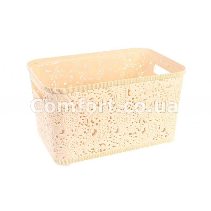 Корзина ажур 3,5л без крышки предназначена для хранения предметов, мелких вещей, отлично подойдет для хранения белья, детских товаров, игрушек, косметики, канцелярских или швейных принадлежностей, и других полезных мелочей. Контейнер изготовлен из высококачественного, цветного пластика, безопасного для здоровья.