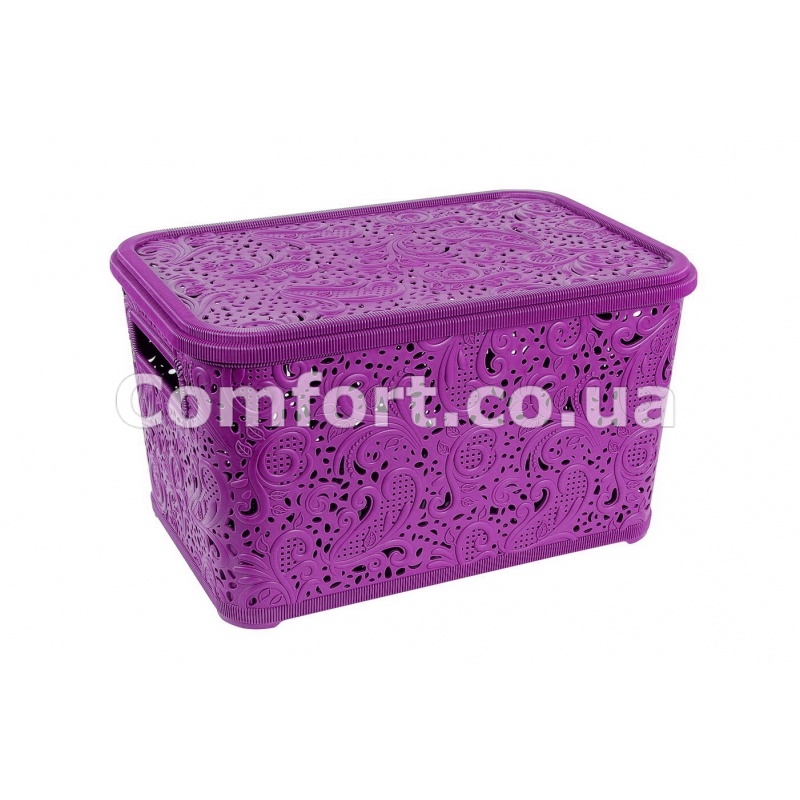 Корзина ажур 3,5л с крышкой предназначена для хранения предметов, мелких вещей, отлично подойдет для хранения белья, детских товаров, игрушек, косметики, канцелярских или швейных принадлежностей, и других полезных мелочей. Контейнер изготовлен из высококачественного, цветного пластика, безопасного для здоровья.
