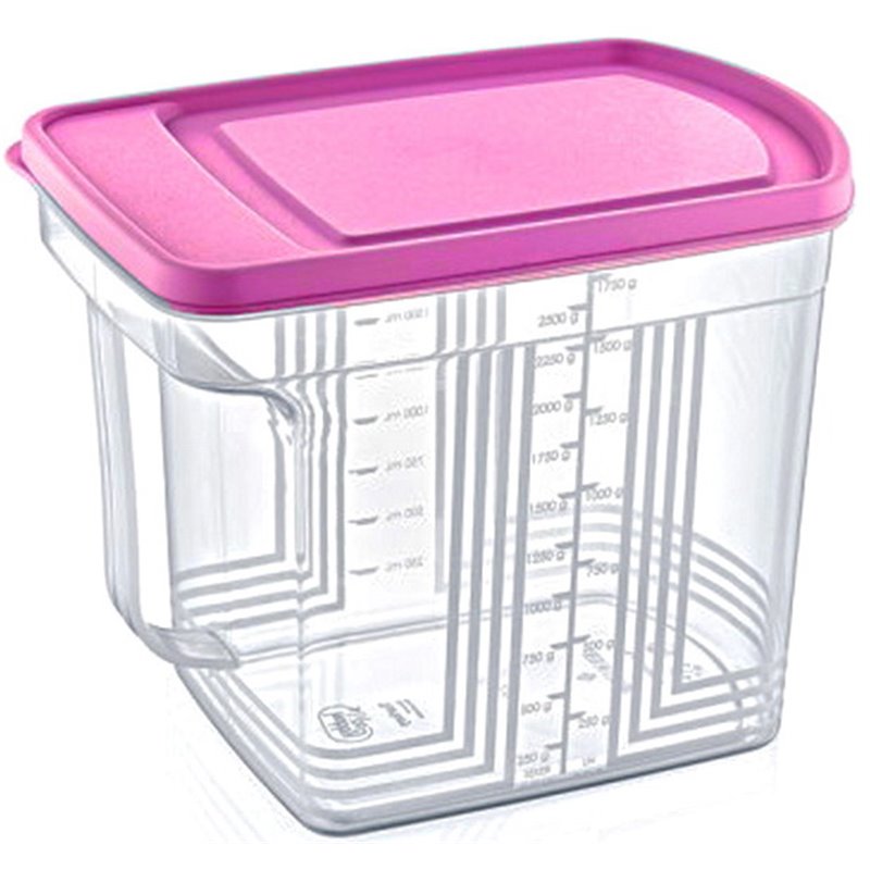 Банка для хранения сыпучих продуктов 2,5л с ручкой необходима на кухне каждой хозяйки, изготовлена из высококачественного, пищевого пластика. Емкость для сыпучих продуктов предназначена для хранения круп, макаронных изделий, муки, сахара, соли, специй и защиты их от сырости и насекомых. Контейнер для хранения сыпучих продуктов с ручкой имеет прозрачные стенки с мерной разметкой и съемную цветную крышку.