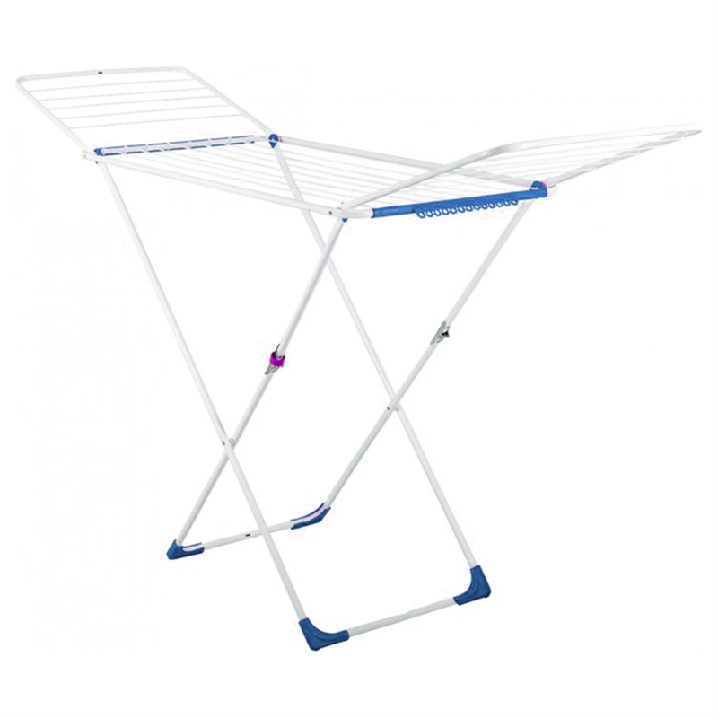 Сушилка для белья имеет простую конструкцию – раздвигающиеся крылья, защитное эпоксидное покрытие, которое делает металл более износостойким, качественное крепление, устойчивые ножки, красивый внешний вид. Ножки сушилки расположены так, что исключается возможность перевеса и опрокидывания, они оснащены блокирующим кольцом, которое служит для защиты от непредсказуемой сборки конструкции. Также преимуществом является наличие пластиковых колес, что существенно облегчает передвижение сушилки, вдобавок, защитные пластиковые опоры противодействуют затиранию покрытия. Сушилка имеет подвес фиксатор для носков, полотенец и для мелкого белья, который значительно увеличивает функциональные возможности сушилки. Общая рабочая поверхность составляет 18 метров, максимально разрешенная нагрузка 15кг.