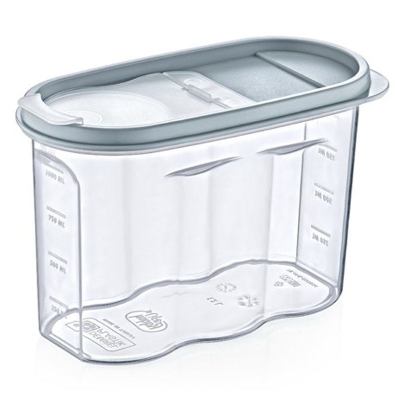Емкость для хранения сыпучих продуктов можно использовать в холодильнике, в морозилке и в микроволновой печи, а также мыть в посудомойке. Крышка контейнера съемная и представлена в разной цветовой гамме.