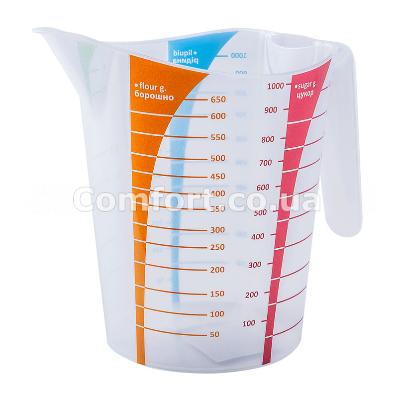 Кружка мерная пластмассовая с ручкой и носиком используется для измерения объема жидкостей, веса сахара, муки и других продуктов питания. Мерная кружка необходимый предмет для приготовления различных блюд, консервации, напитков, особенно если в рецептуре нужно точно и четко соблюдать пропорции. На стенках кружки нанесена мерная шкала для измерения. Мерная емкость нужная посуда на кухне и надежный помощник для каждой хозяюшки.