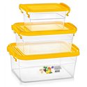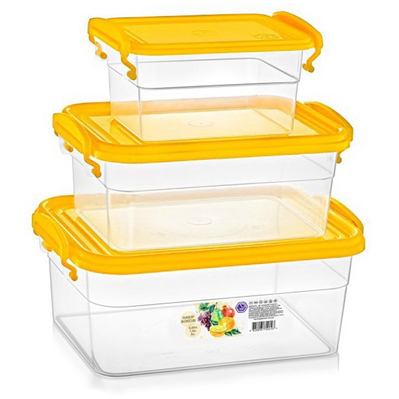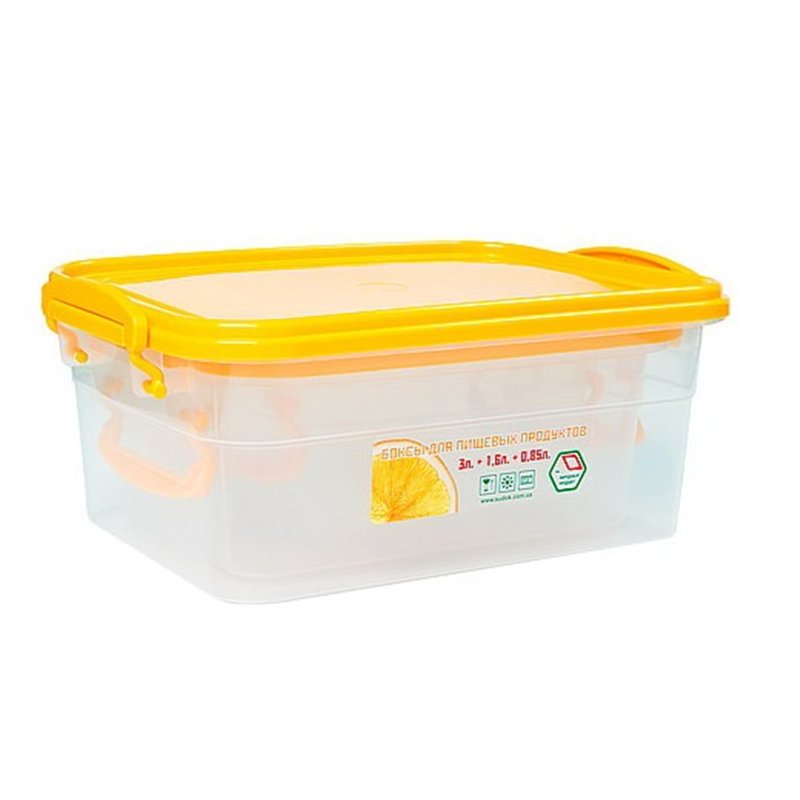 Набор пищевых боксов судочков с ручками защелками 0,85л+1,6л+3л №59 незаменим для хранения, перевозки, разогрева в микроволновке и заморозки продуктов. Набор пищевых контейнеров имеет прямоугольную форму, судочки комплектуются крышкой, которая плотно закрывается и дополнительно фиксируется ручками контейнера с двух сторон, это препятствует случайному открытию крышки, так что Вы можете без проблем взять с собой любое блюдо. Боксы судочки изготавливаются из высококачественного пищевого пластика, который может контактировать с пищей, абсолютно безопасный для здоровья, не содержит вредных веществ, не впитывает запахов блюд и не имеет своего.