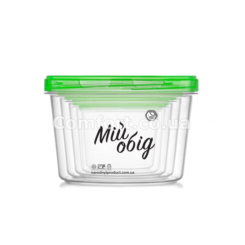 Судок набор НП круглый №82з 0,2+0,3+0,5+0,7+1л зеленая крышка
