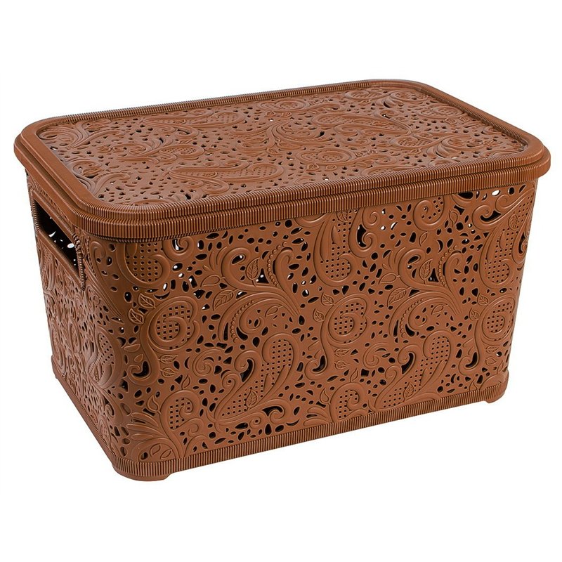 Дизайн корзинки ажур для хранения отличается яркостью, оригинальностью имеет уникальный вид. Пластиковая корзина с крышкой выполнена в виде ажурного узора. Органайзер для хранения ажур с крышкой имеет широкий ассортимент цветов. Корзинка для хранения ажур с крышкой компактная, легкая, прочная и вместительная, максимально повышает уровень удобства, не требует особого ухода. Корзинка ажурная - стильный аксессуар для каждого дома. Практичная корзинка ажур для хранения необходима в каждом доме, она не оставит Вас без внимания.