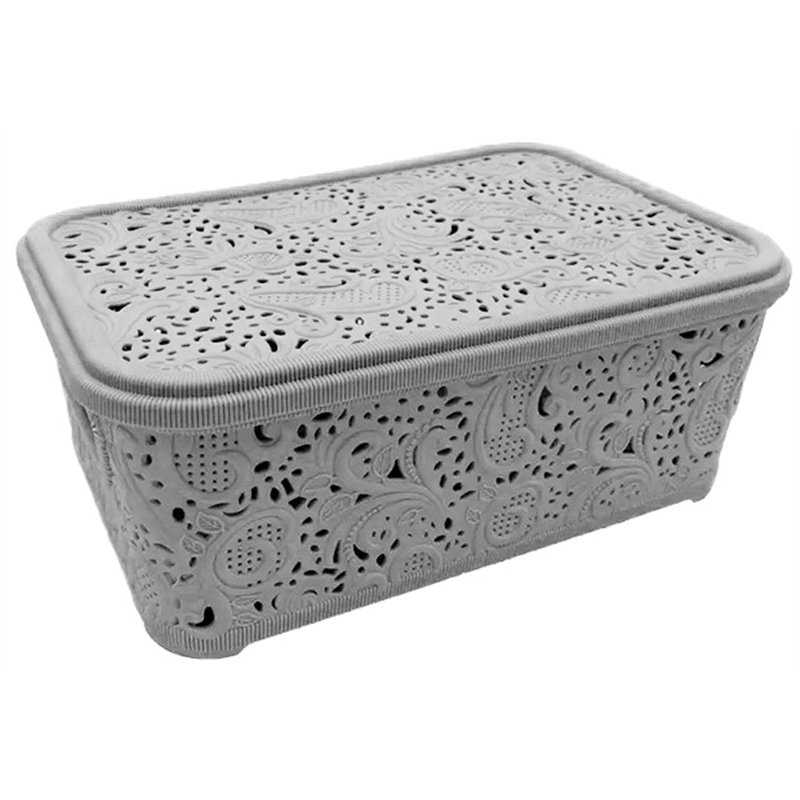 Корзина ажур 4,7л с крышкой предназначена для хранения предметов, мелких вещей, отлично подойдет для хранения белья, детских товаров, игрушек, косметики, канцелярских или швейных принадлежностей, и других полезных мелочей. Контейнер изготовлен из высококачественного цветного пластика, безопасного для здоровья. Конструкция органайзера для хранения ажур с крышкой представляет собой прямоугольный контейнер, на боковых стенках имеются отверстия для циркуляции воздуха, с их помощью корзину удобно переносить.