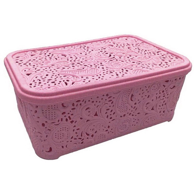 Корзина ажур 4,7л с крышкой предназначена для хранения предметов, мелких вещей, отлично подойдет для хранения белья, детских товаров, игрушек, косметики, канцелярских или швейных принадлежностей, и других полезных мелочей. Контейнер изготовлен из высококачественного цветного пластика, безопасного для здоровья. Конструкция органайзера для хранения ажур с крышкой представляет собой прямоугольный контейнер, на боковых стенках имеются отверстия для циркуляции воздуха, с их помощью корзину удобно переносить.