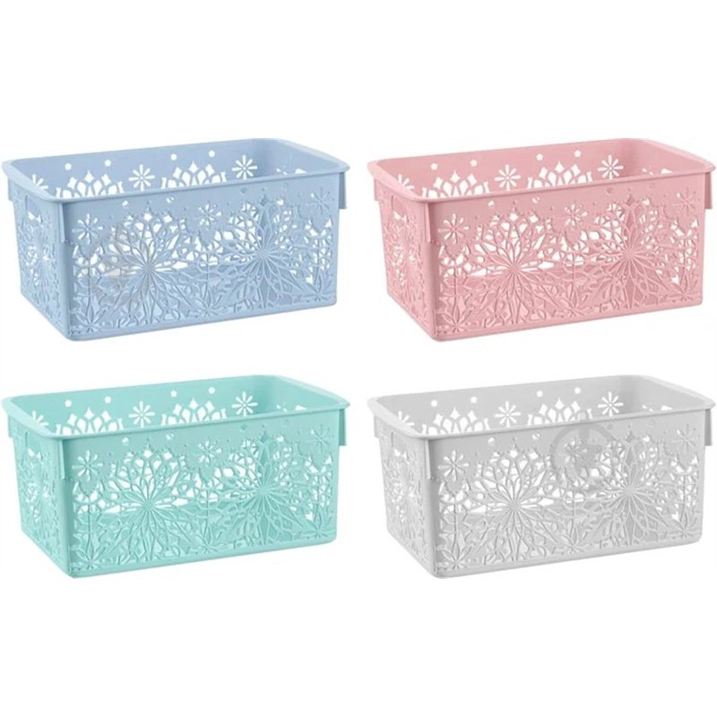 Корзина ОР-598 5л предназначена для хранения полезных мелочей компактная, удобная и практичная. Органайзер для хранения представляет собой контейнер прямоугольной формы, без крышки. Модель корзины выполнена в виде цветочного узора и имеет отверстия для циркуляции воздуха. Универсальная корзинка изготовлена из высококачественного цветного пластика, безопасного для здоровья.