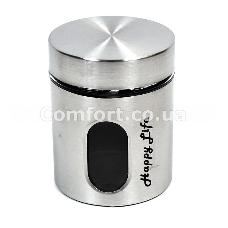 Стеклянная банка предназначена для хранения соли, перца, специй, сахара, кофе, чая, сушеных овощей, трав, сладостей и других сыпучих продуктов. Баночка изготовлена из высококлассного стекла и нержавеющей стали, безвредна для здоровья. Данное соединение материалов позволит сохранять отличный и аккуратный внешний вид даже при долговременном ежедневном использовании. Емкость круглой формы, не займет много места на кухонной полке или в холодильнике. Контейнер выглядит очень стильно и элегантно, а заполненный продуктами станет не только практичным помощником, но и декоративным украшением интерьера Вашей кухни.