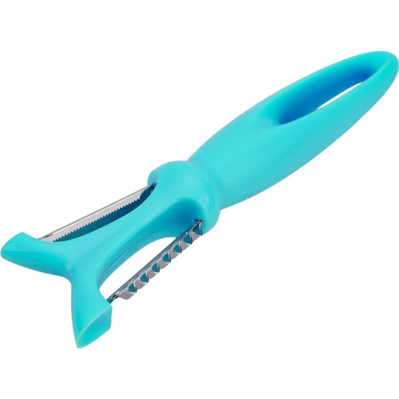 Специальный нож для очистки ускорит и облегчит процесс чистки различных овощей и фруктов, это трудоемкий процесс и не очень приятный, особенно если использовать обычный нож. Удобная овощечистка легко снимает кожуру с овощей и фруктов. Нож имеет 2 установленных лезвия для быстрого удаления кожуры любой толщины и жесткости. Ручка из прочного пластика не будет скользить даже в мокрых руках и имеет защиту от порезов. Нож для очистки овощей - надежный помощник на кухне. Длина 19 см.