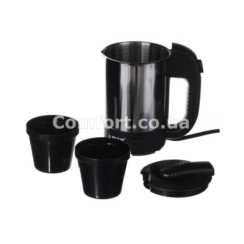 Электрочайник автомобильный является незаменимым аксессуаром в длительных поездках, путешествиях, при отдыхе на природе или просто в дороге. Компактный автомобильный чайник поможет всего за несколько минут получить горячую воду, чтобы приготовить чай, кофе или заварить обед, работает от автомобильного прикуривателя, в комплекте имеет две чашечки. Объем: 0,5л