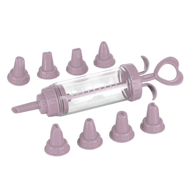Кондитерский шприц AP-1004 с насадками предназначен для приготовления разнообразного печенье, эклеров, украшения и декорирования кондитерских изделий в домашних условиях или на кондитерском производстве. Благодаря этому кулинарному аксессуару можно также придать необходимую форму тесту. Кондитерский шприц изготовлен из высококачественного, пищевого пластика.Кулинарный шприц в комплекте имеет восемь насадок.