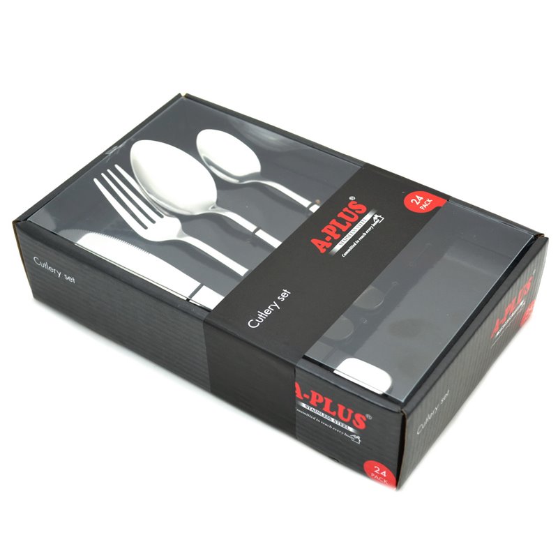 Набор состоит из 24 столовых предметов, для вашего удобства набор упакован в коробку для компактного хранения, благодаря чему этот товар может быть отличным подарком . Предметы в наборе изготовлены из нержавеющей стали высокого качества. Этот металл не вступает в реакцию с пищей во время эксплуатации, не меняет ее вкус и запах. Товар является прочным и долговечным и экологическим. Легко очищается даже в прохладной воде. Имеет современный дизайн. Такие вилки, ложки и ножи удобны в хозяйстве, поездках, походах. Станет многофункциональным помощником для каждой хозяйки и на любой кухне столовой, кафе или ресторана. Набор отлично подойдет для оборудования общепита.