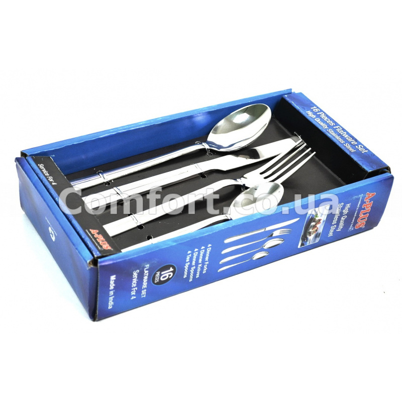 Набор состоит из 16 столовых предметов, для вашего удобства набор упакован в коробку для компактного хранения, благодаря чему этот товар может быть отличным подарком. Предметы в наборе изготовлены из нержавеющей стали высокого качества, с зеркальной полировкой. Этот металл не вступает в реакцию с пищей во время эксплуатации, а значит, не меняет ее вкус и запах. Товар является прочным и долговечным, легко очищается даже в прохладной воде. Такие вилки, ложки и ножи имеют современный дизайн, удобны в хозяйстве, идеальный выбор для подарка. Набор столовый станет многофункциональным помощником для каждой хозяйки и на любой кухне столовой, кафе или ресторана. Столовый набор отлично подойдет для оборудования общепита.