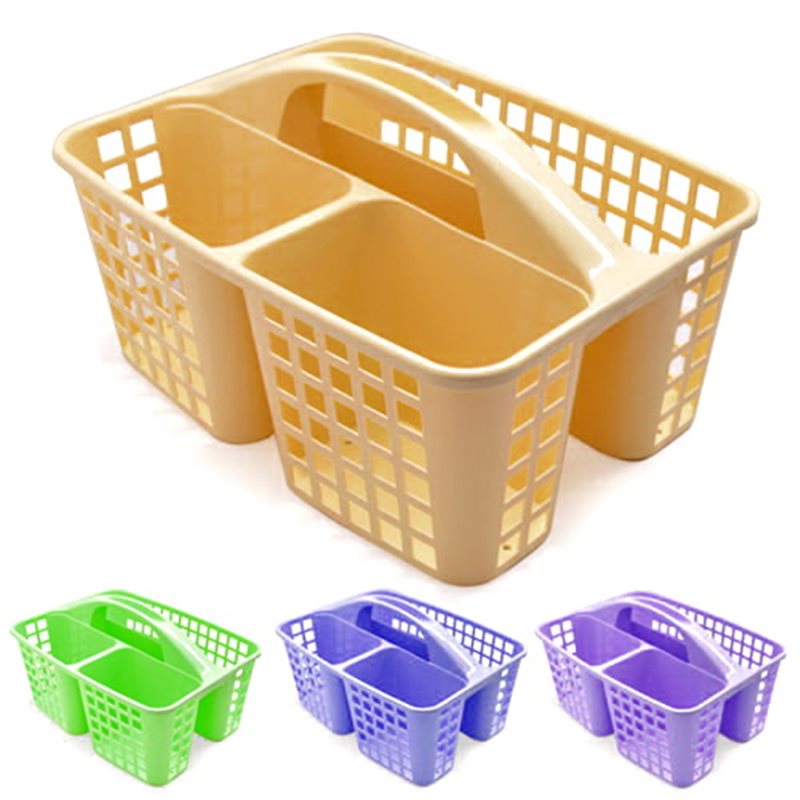 Корзина органайзер с ручкой вместительная и надёжная, идеально подойдёт для хранения бытовой химии, расходных материалов или других мелких вещей. С корзинкой органайзером моющие средства, губки, пакеты, инструменты и прочие необходимые вещи будут всегда под рукой. Стенки органайзера с ручкой имеют отверстия для циркуляции воздуха. Универсальная корзинка органайзер с ручкой изготовлена из прочного, высококачественного, цветного пластика, безопасного для здоровья.