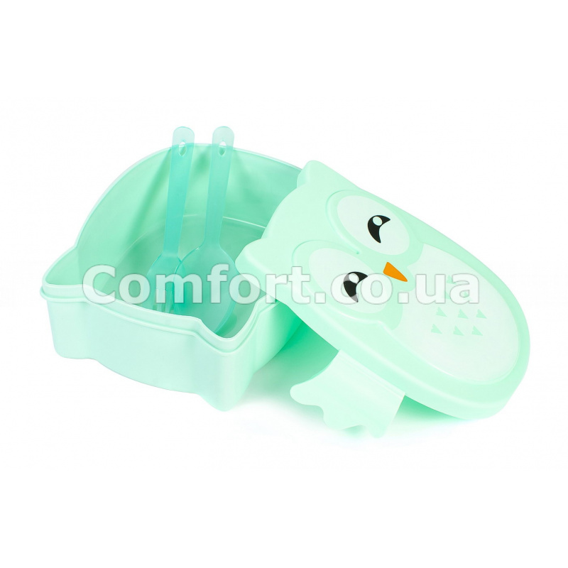 Ланч-бокс Сова 1л пластмассовый, фигурный с защелкой изготовлен из высококачественного, пищевого, цветного пластика, который может контактировать с пищей, абсолютно безопасный для здоровья, не содержит вредных веществ, не изменяет вкус продуктов и не имеет своего. Ланч-бокс цветной комплектуется пластиковыми столовыми приборами. С таким контейнером можно не беспокоиться за питание вне дома, ланч-бокс обеспечит Вас вкусным домашним обедом. Ланч-бокс вместительный и имеет компактные размеры, его можно носить в любой сумке или рюкзаке. Этот стильный ланч-бокс станет оригинальным и полезным подарком на любой праздник.