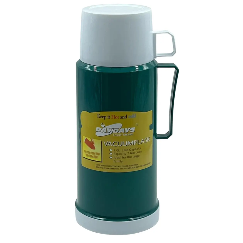 Колба стеклянного термоса выполнена из натриево-силикатного стекла. Колба очень плотно фиксируется двумя резиновыми амортизаторами, в горловине и дне термоса. Это сделано для защиты колбы от ударов. Как правило, термосы выдерживают падение с высоты не более метра без ущерба для колбы. Исходную температуру напитка дольше всего сохраняют стеклянный термос большей емкости. Термосы компактны благодаря своим небольшим размерам, поэтому подойдут широкому кругу потребителей.