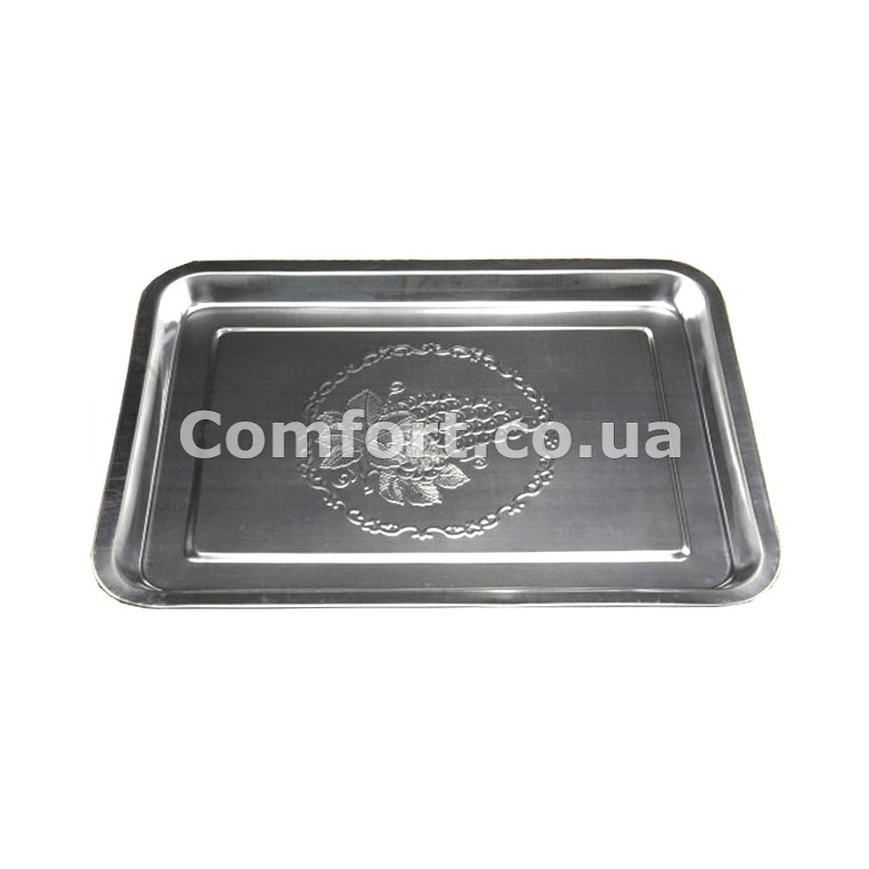 Поднос изготовлен из высококачественной нержавеющей стали, что обеспечивает данному товару надежное и долговечное использование дома, в кафе и ресторанах. Поднос имеет прямоугольную форму с закругленными краями. На дне подноса выполнен чеканный декор в виде виноградной грозди. Наличие прямых бортиков обеспечивает удобство при переносе и подаче на нем или с него различной посуды, чайных и кофейных приборов и принадлежностей. Также разнос может использоваться для красивой подачи десертов, фруктов, различной нарезки и других напитков и блюд. Поднос металлический удобный и практичный, устойчив к температурным изменениям, не окисляется и не деформируется. Нержавеющий поднос легко моется в холодной или горячей воде, а также в посудомоечной машине. Преимуществом прямоугольного подноса является его небольшой вес. Стильный нержавеющий поднос незаменимый помощник при сервировке любого стола на банкете, фуршете или во время домашнего застолья, он идеально впишется в любой интерьер. Вся посуда на прямоугольном подносе будет держаться устойчиво и красиво. Размеры: 50х35см.