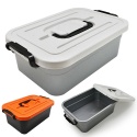 Емкость комплектуется крышкой с ручкой, которая плотно закрывается и дополнительно фиксируется ручками контейнера с двух сторон, это препятствует случайному открытию крышки. Контейнер универсальный имеет неограниченную сферу применения в быту и термин эксплуатации.