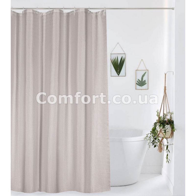 Штора для ванной комнаты Пика ткань Премиум однотонная отличное украшение интерьера и очень функциональная вещь, которая помогает создать хорошее настроение, как во время приема душа, так и после него. Шторка предназначена для комфортного принятия душа, обеспечивает гигиеничность помещения, надежную защиту от влаги, препятствует попаданию воды на пол и другие предметы ванной комнаты, а так же, создает уединенную обстановку и неповторимое настроение при приеме водных процедур. Занавеска подойдет как для обычной ванны, так и для душевой кабинки и нестандартных ванн. Практичная штора для ванной комнаты не только защищает от брызг воды, а еще служит декоративным элементом интерьера. Подобрать занавеску для ванной очень легко, так как она представлена в большом ассортименте цветов, которые подойдут к любому дизайну ванной комнаты. Самые прочные и долговечные тканевые шторы, ткань для их изготовления обрабатывается специальной водоотталкивающей пропиткой, такие шторы можно стирать в стиральной машине. Ткань для занавесок в ванную комнату однотонная, имеет достаточно, нейтральный, сдержанный рисунок. Именно такие стильные и привлекательные тканевые шторы выглядят мягко, пользуются большим спросом, потому что смотрятся оригинально и нестандартно.