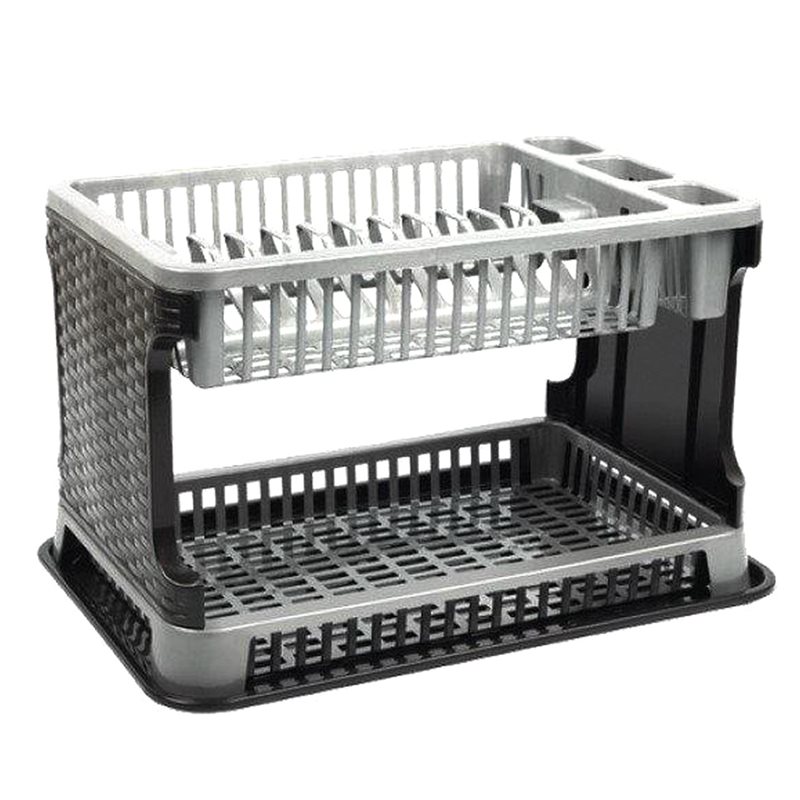 Сушилка для посуды пластмассовая, состоит из двух ярусов, предназначена для сушки тарелок, чашек, стаканов и столовых приборов. Двухъярусная сушилка имеет полку для тарелок и полку для чашек с поддоном. Сушка для посуды удобная и функциональная, позволяет экономить пространство на кухне, изготовлена из цветной пластмассы.