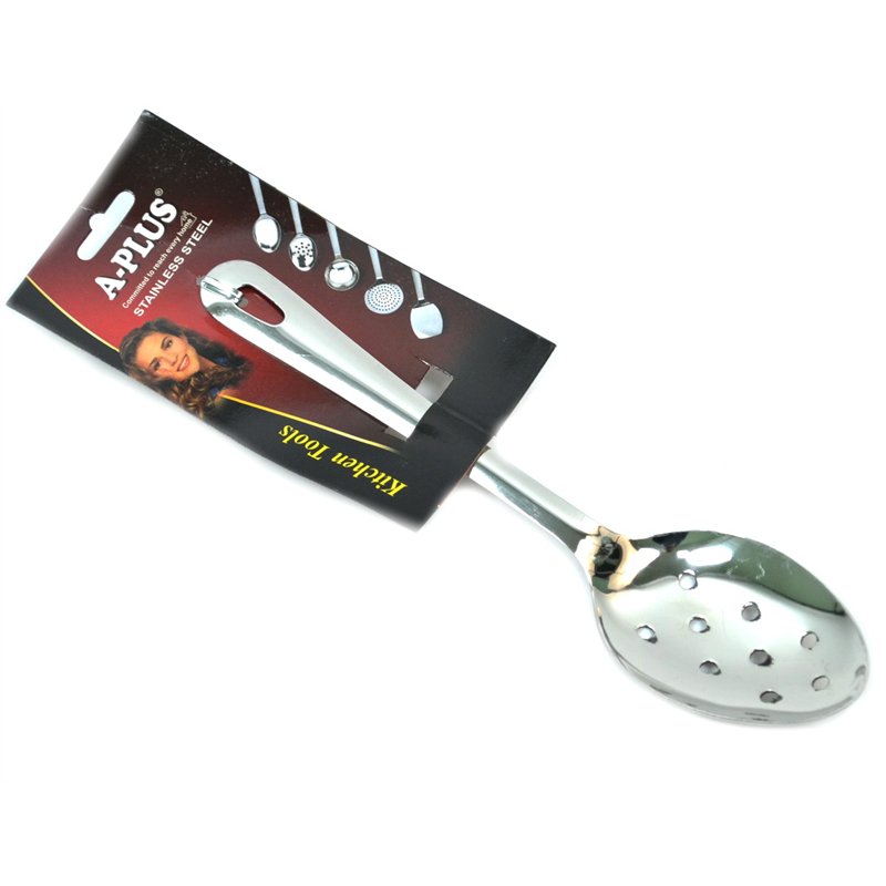 Ложка кухонная с дырочками, практичная и удобная в использовании. Ложка используется для снятия пены, для извлечения продуктов из бульонов, мяса, рыбы, вареников, пельменей. Ложка с дырочками изготовлена из высококачественной нержавеющей стали. Ложка легко моется, также пригодна для мытья в посудомоечной машине. Имеет удобную ручку с петлей для подвешивания. Лаконичный стильный дизайн подойдет к интерьеру любой кухни.