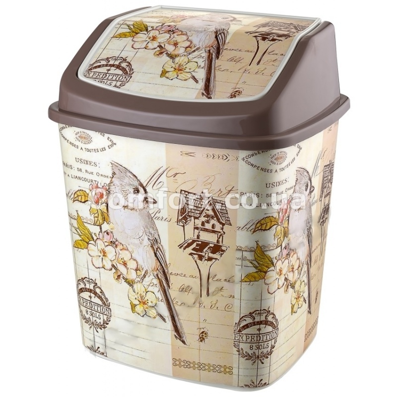 Ведро для мусора с рисунком 341 с качающейся крышкой, компактное и функциональное, необходимая вещь в каждом доме. Мусорный контейнер с перекидной крышкой выполнен с индивидуальным стильным рисунком, что придает изделию необычный внешний вид и делает обычное мусорное ведро в дорогой, незаменимый аксессуар для повседневного использования и украшением интерьера вашей ванной комнаты, санузла, кухни, офиса или дачи. Ведро для мусора с рисунком изготовлено из высококачественного, прочного, безопасного цветного пластика с наклейкой. Мусорное ведро с поворотной крышкой удобно в использовании, в процессе открывания, закрывания крышки никаких посторонних звуков ведро не издает, посторонние запахи в помещении не распространяются, легко моется. Мусорный контейнер с рисунком поможет содержать любое помещение в чистоте и порядке и добавит привлекательности интерьеру. Объем 8л. Размеры: 22,5х17,5х29см. Производитель: Турция.