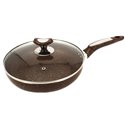 Сковорода 28см з кришкою виготовлена з якісного литого алюмінію з мармуровим покриттям, яке акумулює тепло рівномірно розподіляючи його по поверхні. Сковорода зі скляною кришкою пристосована для виготовлення на всіх сучасних типів плит.