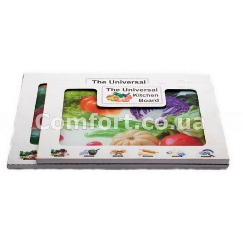 Дошка кухонна обробна скло прямокутної форми, компактна зручно висипати нарізані овочі або м'ясо в каструлю або відразу в сковороду. Обробна дошка призначена для нарізки продуктів харчування в процесі приготування або безпосередньо перед поданням на стіл. Дошка ідеальна для оброблення або нарізки овочів, фруктів, м'яса, птаха, риби, ковбаси і інших продуктів. Завдяки гумовим ніжкам, скляна дошка не ковзає по гладкій поверхні кухонного столу. Обробна дошка стекло надійна і довговічна, її поверхня має водовідштовхувальні властивості, не вбирає запахи і допомагає ножам довго не тупитися, на ній не залишається подряпин і інших ушкоджень від ножа. Після використання обробна дошка легко миється навіть під струменем холодної води або в посудомийній машині. Кухонна обробна дошка проста і якісна виготовлена з жароміцного скла, можна використати як підставку під гаряче. Перевагою досточки для нарізки є її невелика вага і компактність. Декоративна скляна обробна дошка з малюнком стане відмінним яскравим акцентом в інтер'єрі кожної кухні.