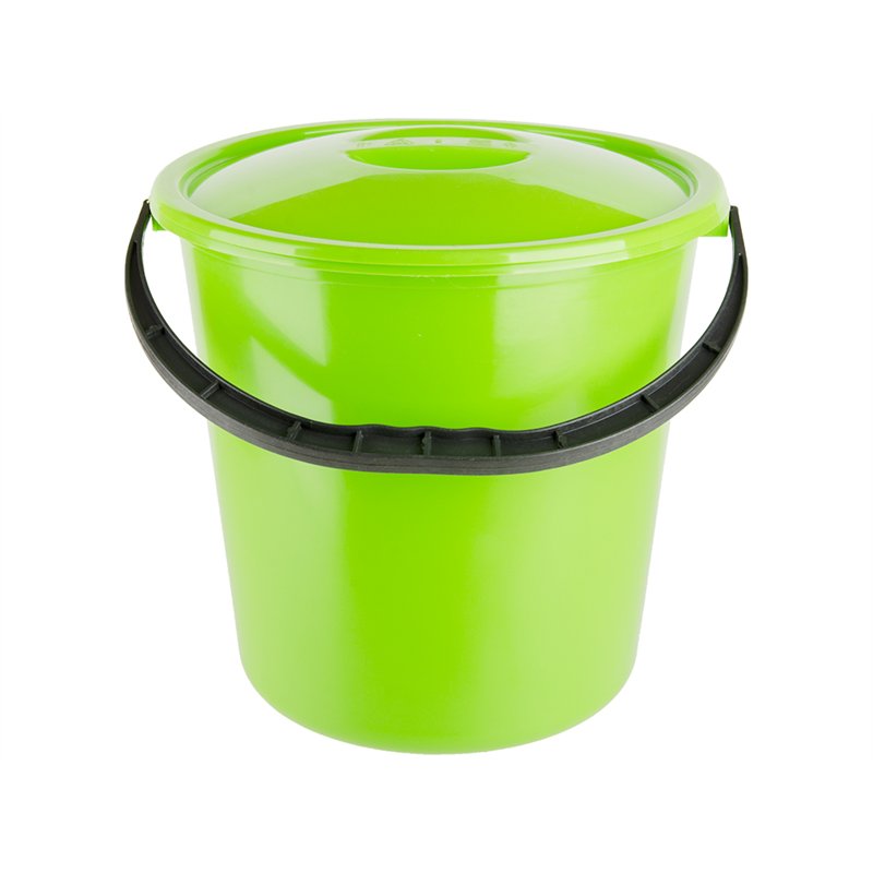 Відро 12л кольорове, круглої форми, призначене для зберігання та транспортування рідких та сипких матеріалів. Відро виготовлене з міцної, високоякісної, кольорової, харчової пластмаси, без запаху.