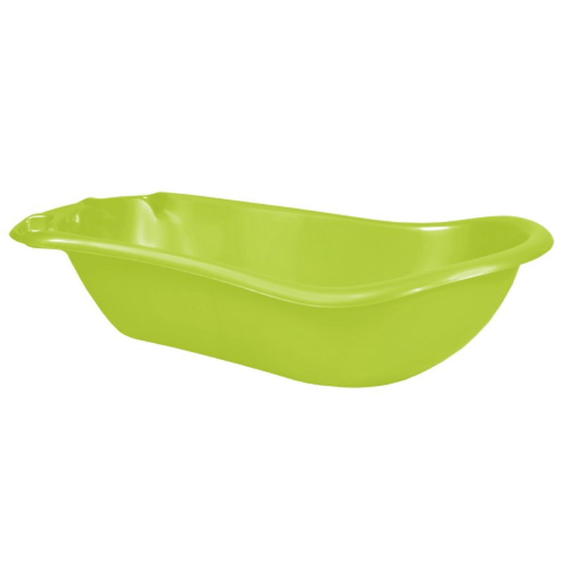 Форма дитячої ванночки обтічна і дуже практична. Перевагою ванни для дітей є зручна спинка що має нахил для купання малюка в положенні сидячи і гладкі безпечні краї. Щоб усі необхідні речі знаходилися поруч, на ванні є спеціальні поглиблення виїмки з боків. Дві отвір-полички стануть прекрасним місцем для засобів гігієни, мила, губки, брязкальця, соски, а також іншого необхідного при кожному купанні приладдя. Усі кути пластмасової ванночки для дітей закруглені для безпеки і комфорту під час купання.