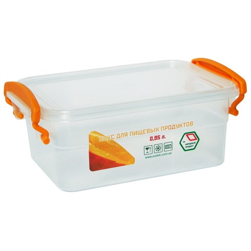 Контейнер 0,95л №56 харчовий з ручками засувками призначений для зберігання, транспортування продуктів чи готових страв та їх заморожування чи розігріву. Ємність має прямокутну форму, комплектується кришкою, яка щільно закривається і додатково фіксується ручками контейнера з двох сторін, це перешкоджає випадковому відкриттю кришки, тому Ви можете без проблем взяти з собою будь-яку страву. Бокс виготовлений з високоякісного харчового пластику, який може контактувати з продуктами, абсолютно безпечний для здоров'я, не містить шкідливих речовин, не вбирає запахів страв і не має свого. Прозорі стінки судочка дозволяють бачити вміст у ньому. Харчовий контейнер підходить для використання в посудомийній машині, холодильнику, морозильній камері, мікрохвильовій печі.