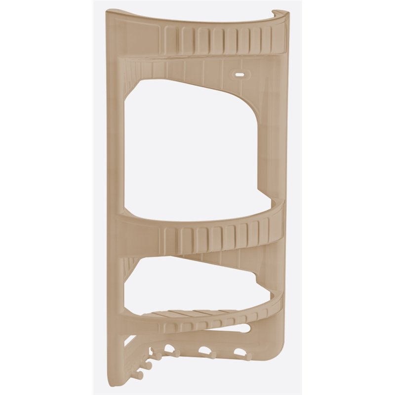 Кутова полиця практична, компактна і містка, складається з трьох ярусів, внизу є невеликі гачки, стійка до температурних змін. Полиця етажерка виготовлена з кольорової якісної пластмаси, яка упродовж довгих років експлуатації забезпечує міцність і надійність цього аксесуара. Завдяки своєму розміру і універсальному дизайну поличка буде гармонійною у будь-якому приміщенні і ідеально впишеться в сучасний інтер'єр.