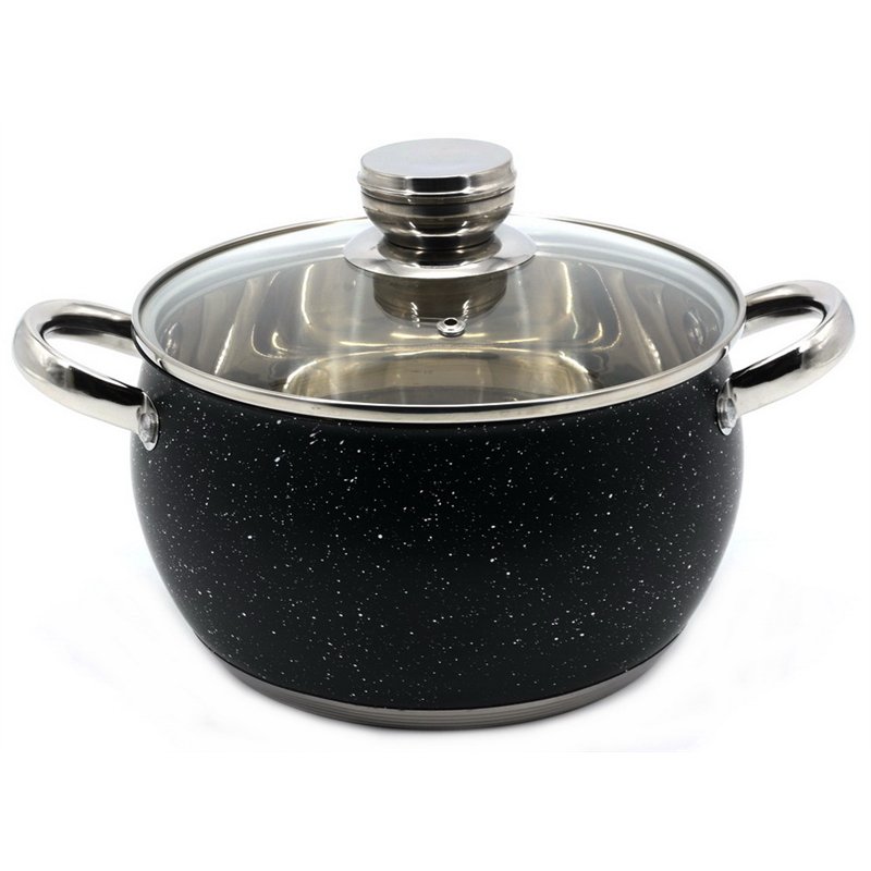 Каструля виготовлена з нержавіючої сталі, покритої спеціальним мармуровим антипригарним покриттям. Завдяки такому покриттю каструля має високу зносостійкість та теплопровідність.
