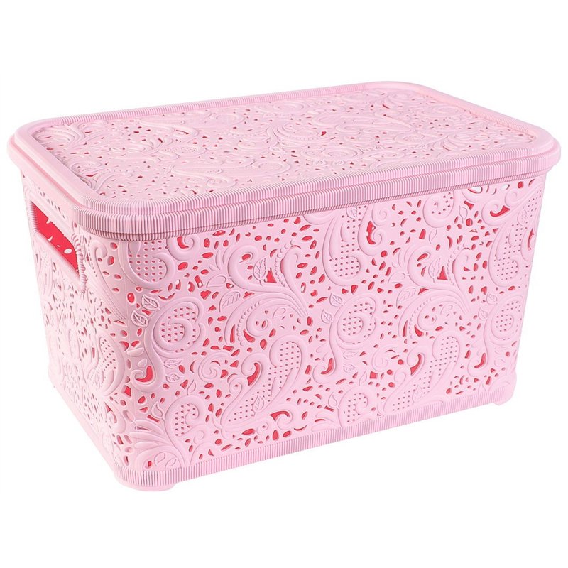 Кошик Ажур 12л з кришкою ПБ-591 рожевий