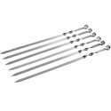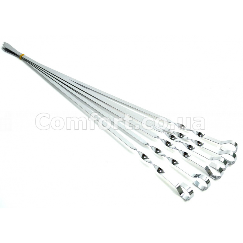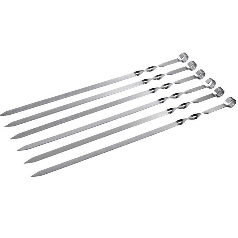 Шампур кутовий і має зручну ручку, що дозволяє легко надівати м'ясо на шампур, прокручувати підготовлюване м'ясо і фіксувати його в потрібному положенні. Набір кутових шампурів виготовлений з високоякісної нержавіючої сталі.