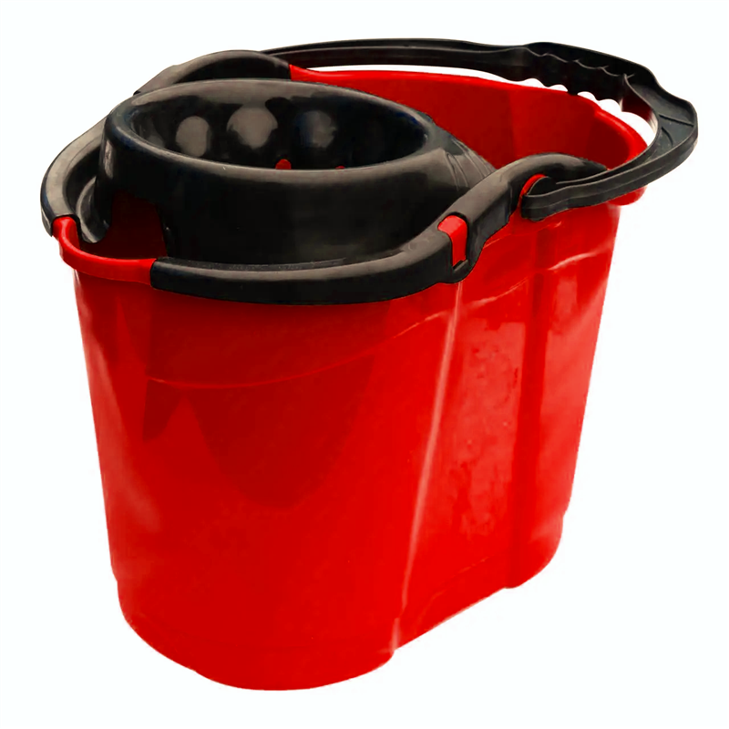 Відро для швабри з віджимом 14л з насадкою виготовлене з міцного, якісного, кольорового пластику. Універсальне відро може стати вирішенням багатьох завдань, його застосовують у домашньому господарстві або для прибирання. Відро з насадкою овальної форми, має два носики та два поглиблення з двох сторін для зручного переливання води з відра. Відро під швабру комплектується знімним віджимом насадкою для мопа. Пластикове відро з віджимом для мотузяної швабри мопа не вимагає особливого догляду і легко миється, його можна використовувати з будь-якою шваброю.
