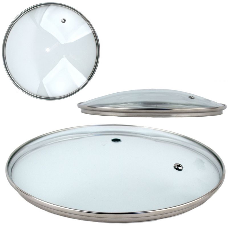 Скляна кришка з ручкою 30см виготовлена з термостійкого скла, вигнутої форми. Кришка має нержавіючий обідок, який перешкоджає сколу скла, а також отвір для відведення пари, що утворюється. Завдяки прозорому склу можна контролювати сам процес варіння, смаження або тушкування різних продуктів не піднімаючи щоразу кришку.