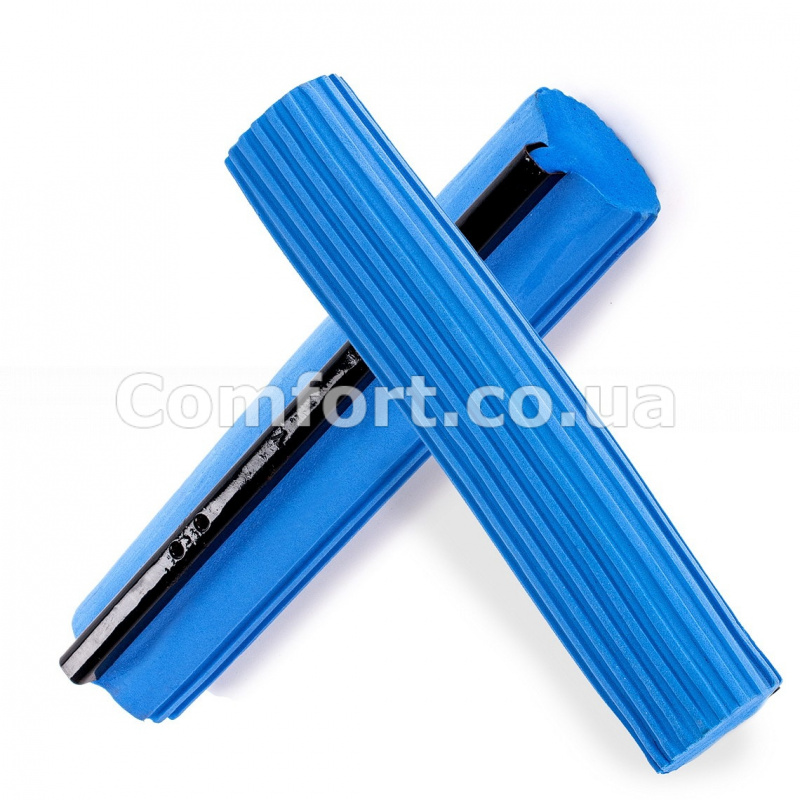 Запаска на швабру з віджимом синя тверда добре вбирає велику кількість вологи, видаляє забруднення, збирає пил, бруд, дрібне сміття, волосся і шерсть домашніх тварин, не залишаючи розводи на підлозі. Спеціальна ребриста поверхня насадки дозволить видаляти важкодоступні забруднення, запаска добре промивається. Змінна насадка застосовується для миття підлоги, вікон, стін або машин. Губка для швабри ідеально підходить для усіх видів гладких поверхонь з дерева, плитки, паркету, лінолеуму, кахлю, каменю і ламінату. Заміна губки для швабри легко робиться за допомогою викрутки. Запасна насадка на швабру виготовлена з якісного синтетичного матеріалу PVA і прослужить довгий час. Змінна запаска легко стискається і розтискається, легко вбирає і випускає вологу, зберігає свою структуру і форму після багаторазового використання. Універсальна запасна насадка може використовуватися для швабр з подвійним і одинарним віджимом. Перед застосуванням змінну губку треба замочити у воді на 10 хвилин. Розмір: 27х6см. Виробник: Китай.