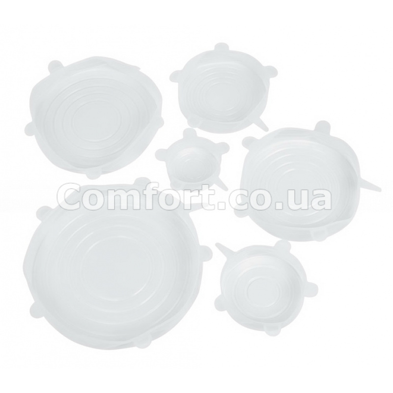 Зручні універсальні силіконові кришечки використовують для будь-яких ємностей. За допомогою силіконових кришечок можна герметично закривати будь-які каструлі, чашки, тарілки, склянки або контейнери з їжею. Кришки легко одягаються, щільно прилягають і утримують рідини усередині місткості. Силіконові кришки виготовлені з екологічно чистого матеріалу і прослужать довгі роки. Силіконова кришка легко миється і підходить для усіх видів посуду. Набор складається з 6 штук силіконових кришечок різного діаметру. Розміри: 7см, 10см, 12см, 14см, 16см, 20см.