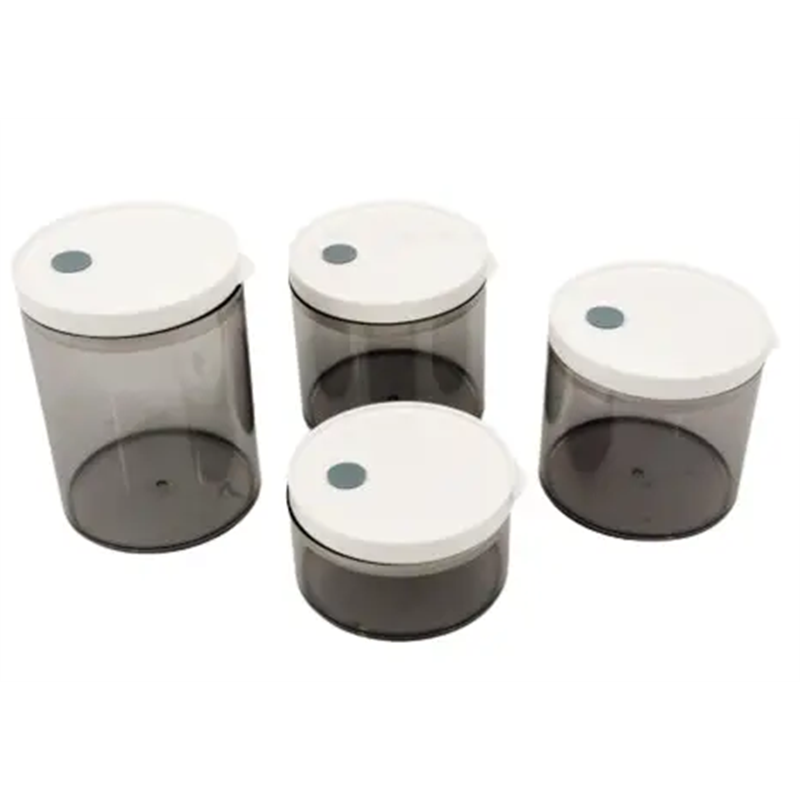 Вакуумні кришки оснащені клапаном, що має механізм видалення повітря, для цього необхідно просто відкрити клапан, натиснути на кришку і закрити його. Контейнери для сипких продуктів прозорі, круглої форми, кришки в них легко відкриваються та щільно закриваються. Банки для сипких не вимогливі у догляду, їх легко мити. Завдяки прозорості харчових ємностей для сипучих видно, що знаходиться у кожній баночці. Універсальні судочки мають необмежений термін експлуатації.