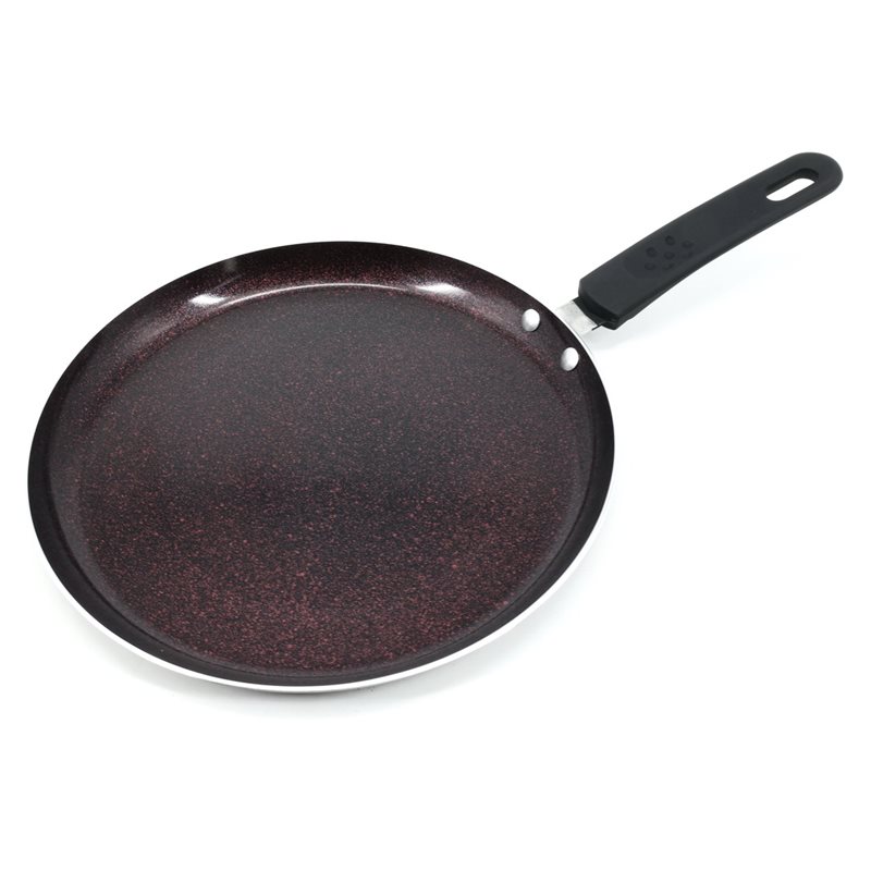 Сковорода млинцева з антипригарним покриттям, має низькі стінки, що полегшує процес приготування, підходить для усіх видів плит, ручка бакелітова не нагрівається при використанні. Діаметр: 20см