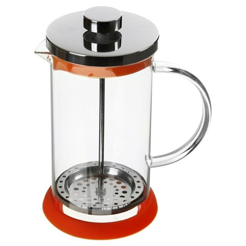 Заварник кольоровий виготовлений з жаростійкого скла та нержавіючої сталі, складається з стрижня, нижня частина якого з'єднана з сітчастим фільтром, що щільно прилягає до стінок чайника, а верхня проходить через кришку. Багатофункціональний заварник призначений для приготування меленої кави або заварного чаю методом відстоювання та віджиму, настоянки різних ягід, трав та відварів. Часу на заварювання в пресі потрібно набагато менше, ніж у турку або звичайному чайнику. Крім того, френч-прес можна використовувати як щодня, так і для сервірування святкового столу завдяки його стильному зовнішньому вигляду. Заварювальний чайник простий в експлуатації та легко очищається. Заварник прес прикрасить інтер'єр і стане чудовим помічником на кожній кухні.