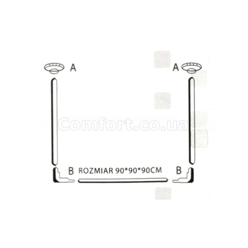 У комплект входить три трубки по 90см, куточки і з'єднувальні частини, можливі три варіанти складання карниза :