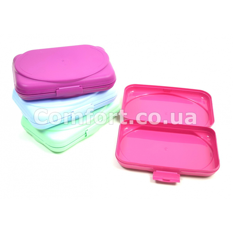 Ланч-бокс з малюнком, плоский, прямокутної форми з кліпсою виготовлений з високоякісного, харчового, кольорового пластику, який може контактувати з їжею, абсолютно безпечний для здоров'я. Ланч-бокс декорований яскравим, дитячим малюнком, не містить шкідливих речовин, не змінює смаку продуктів і не має свого.