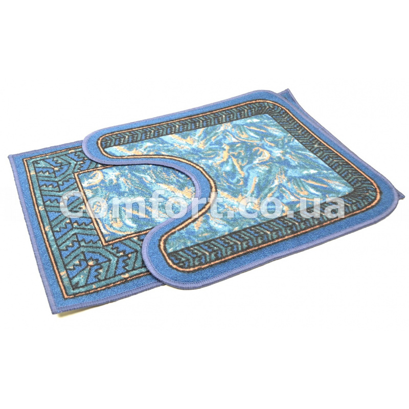 Килимок 2-й набір Клеопатра з малюнком 50х80 Таба блакитний мармур кант з ялинковим візерунком