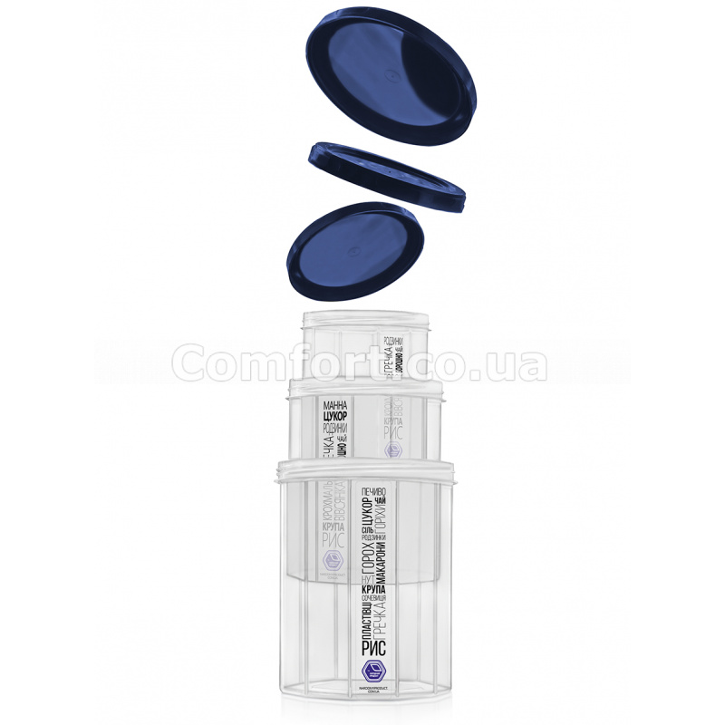 Контейнер для сипких продуктів прозорий у формі циліндра, підходить для миття в посудомийній машині, для зберігання в холодильнику і морозильній камері. У мікрохвильовій печі використати без кришки! Стильне графічне оформлення підійде до інтер'єру будь-якої кухні. Тому, все, що Вам необхідно зробити - придбати певну кількість місткостей, пересипати в них крупи, борошно, макарони і інші продукти, розмістити їх на кухонних полицях і насолоджуватися порядком. Виробник: Україна.