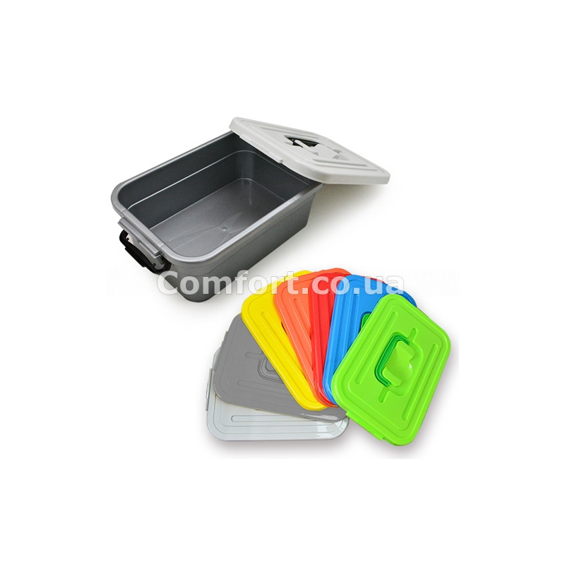 Ємність комплектується кришкою з ручкою, яка щільно закривається і додатково фіксується ручками контейнера з двох сторін, це перешкоджає випадковому відкриттю кришки. Контейнер універсальний має необмежену сферу застосування в побуті і термін експлуатації.